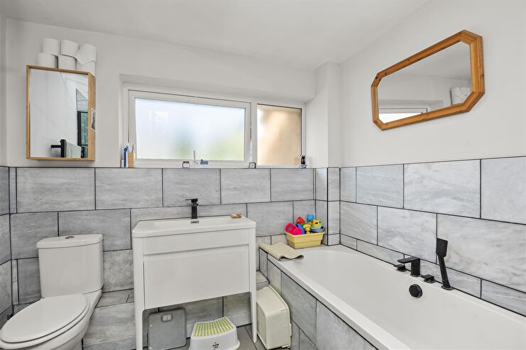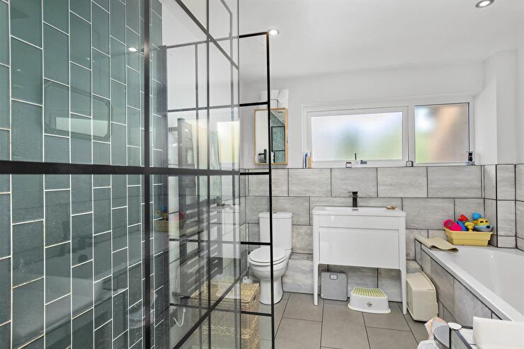 Double glazed front aspect window. Panelled bath a shower attachment. Low level WC. Wash hand basin. Double shower cubicle. Radiator.