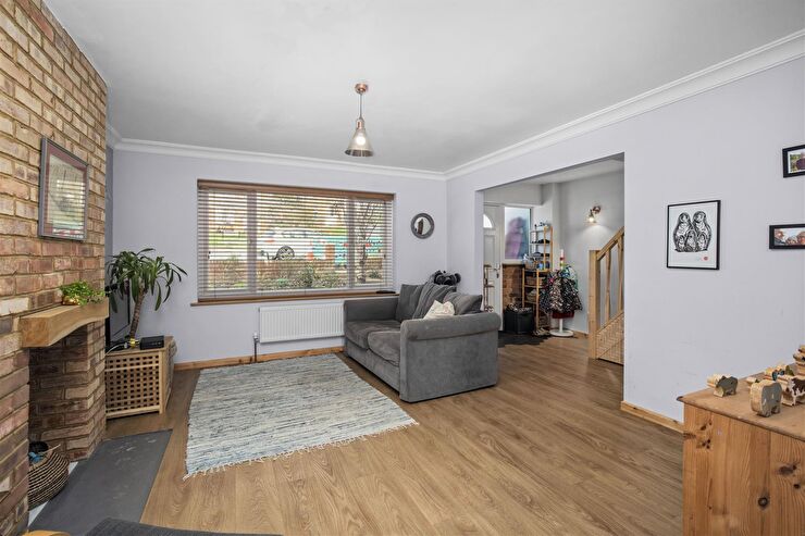 Double glazed front aspect window. Feature brick built fireplace (not a working fire). Stairs leading to the first floor. Archway though to kitchen/dining room. Door leading to: