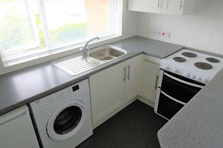 Range of fitted wall & base units, roll edged work surface with inset stainless steel single drainer sink unit with mixer tap, breakfast bar, space for various appliances, part tiled walls, extractor hood, double glazed window.
