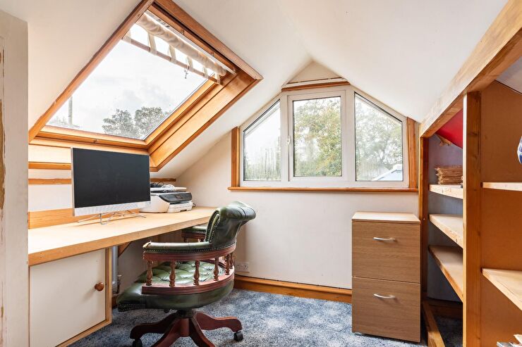 Radiator, 2 x Velux windows, windows to rear, 4 x eaves storage cupboards.