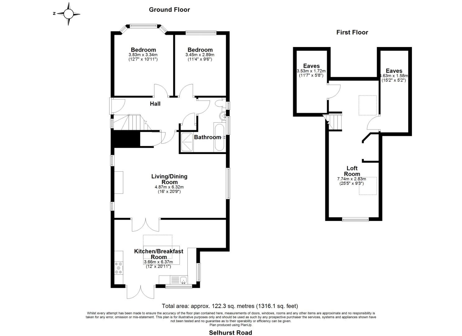 Stairs rising to boarded loft space, radiator, cupboard housing electric meters, wooden flooring, further built in storage cupboard, doors to all rooms.