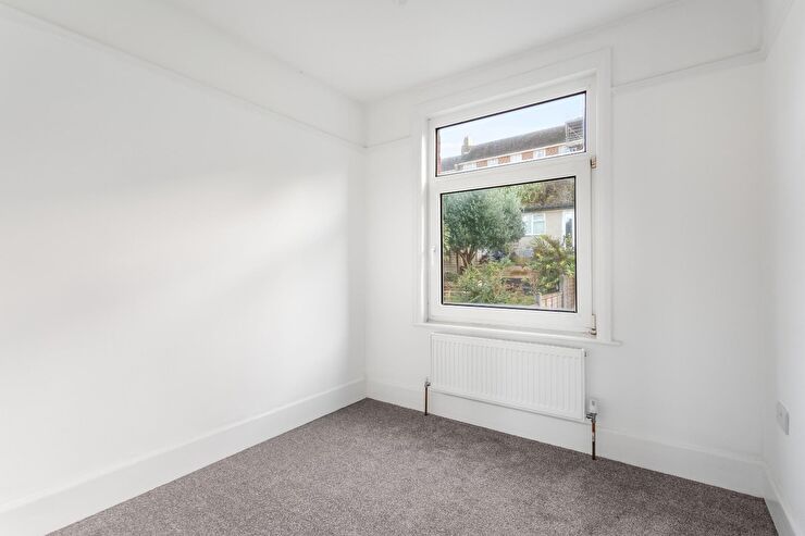 Window to rear, radiator, picture rail, built in storage cupboard housing ‘Alpha’ boiler.