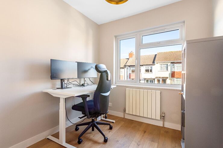 Window to front, radiator, wood effect flooring.