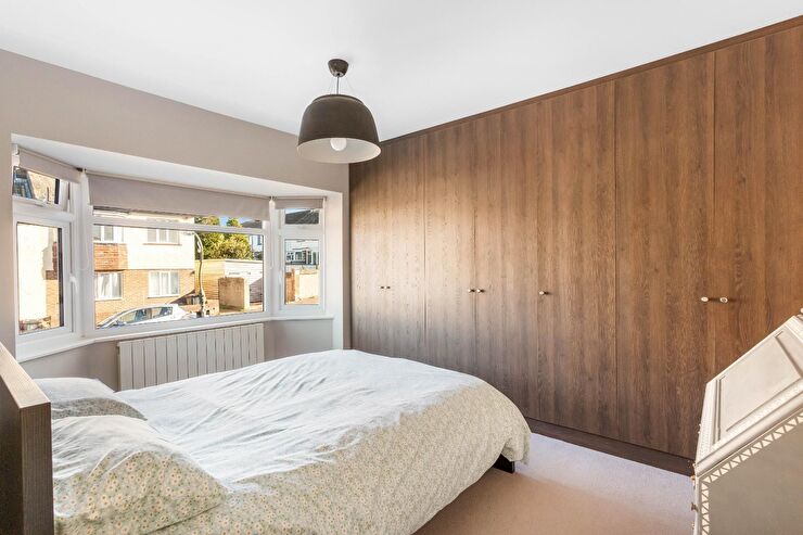 Bay window to front, radiator, range of built in wardrobes,.