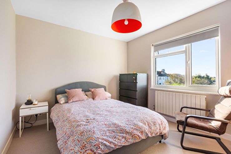 Window to rear with views over Brighton, radiator, range of built in wardrobes.