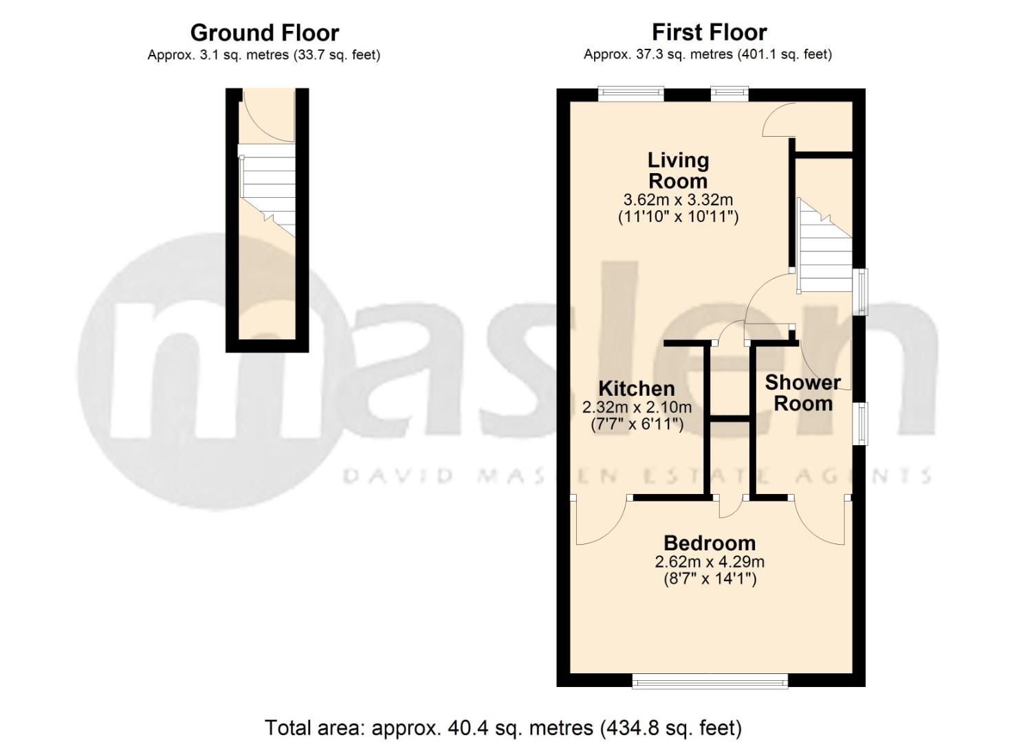 Two double glazed front aspect windows. New fitted electric storage heaters. x2 storage cupboards and opening to: