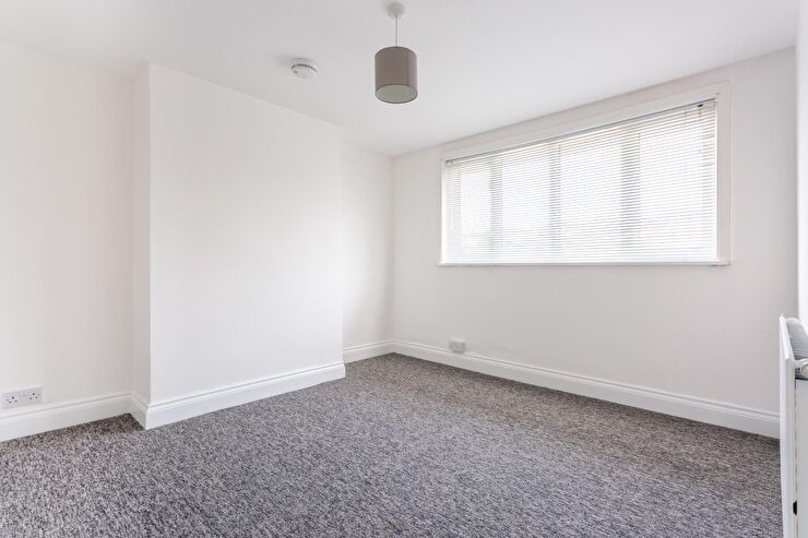 Window to front with frosted glass, laminate flooring, radiator, stairs rising to first floor, 2 x under stairs storage cupboards housing 'Worcester' boiler & electric meters, doors to all rooms.