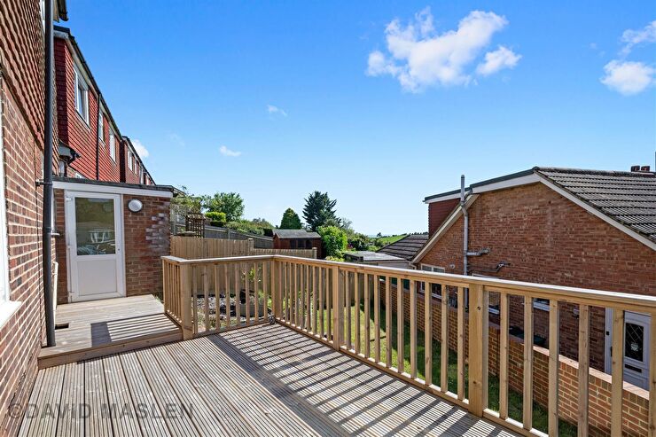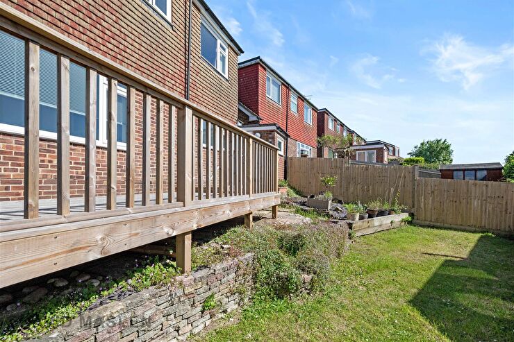 Decked, paved & lawned rear & side garden being predominantly westerly facing.