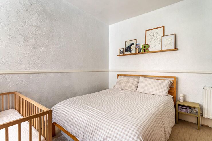 Pair of sash windows to rear, dado rail, radiator.