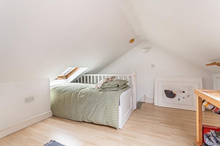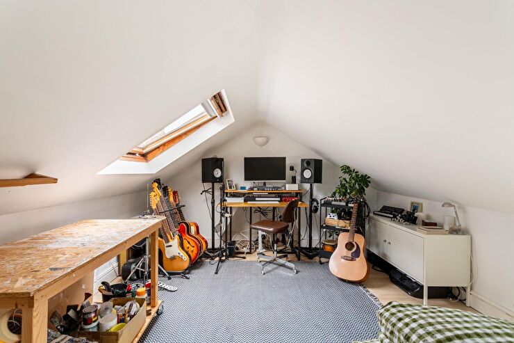 Radiator, Velux windows to front & rear, hatch to eaves storage space, wood effect flooring.
