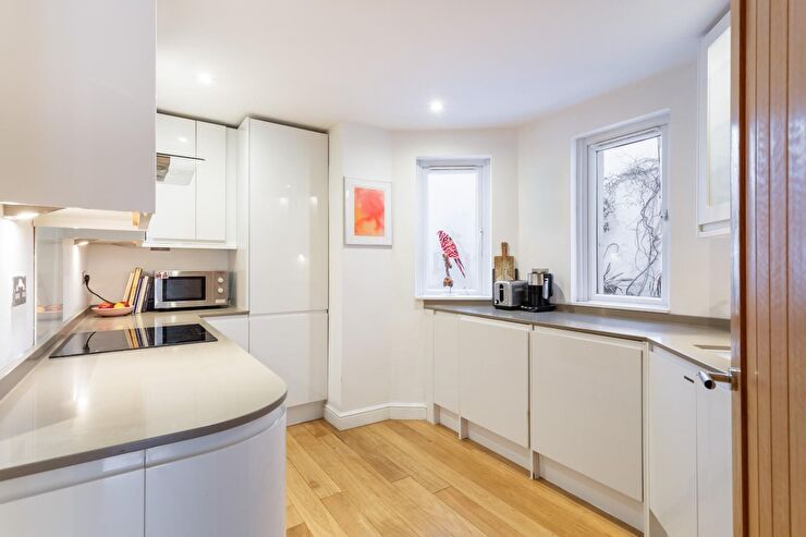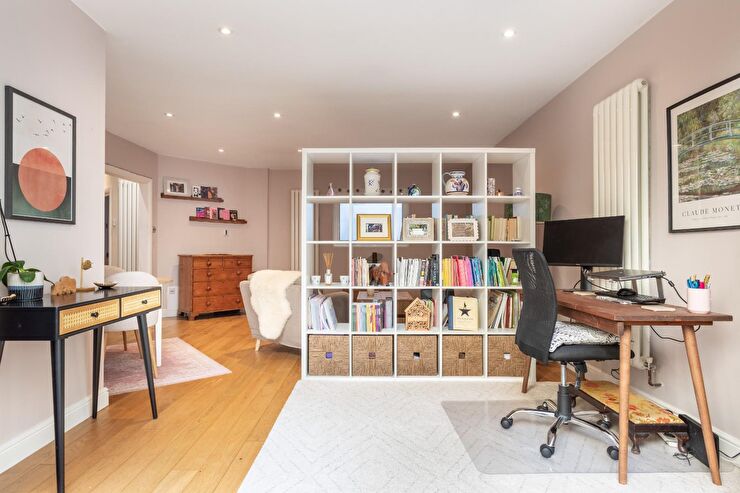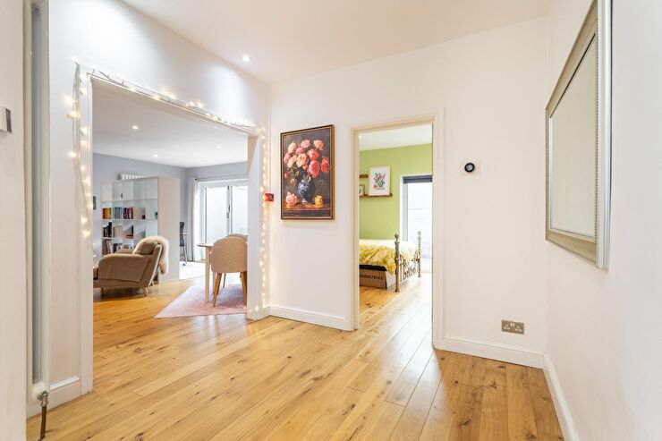 Hatch to loft space, solid oak flooring, underfloor heating, recessed spotlights, upright radiator, wall mounted 'Nest' thermostat, doors to all rooms.