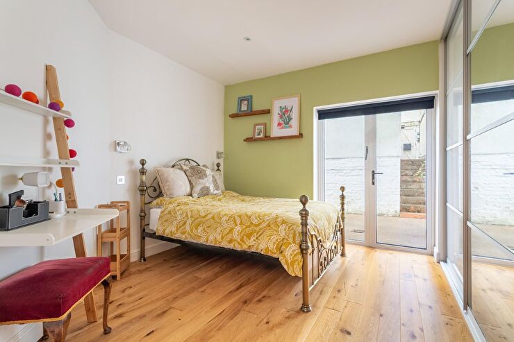French doors opening onto private patio, recessed spotlights, solid oak flooring, underfloor heating, built in wardrobes with sliding door, wall mounted boiler.