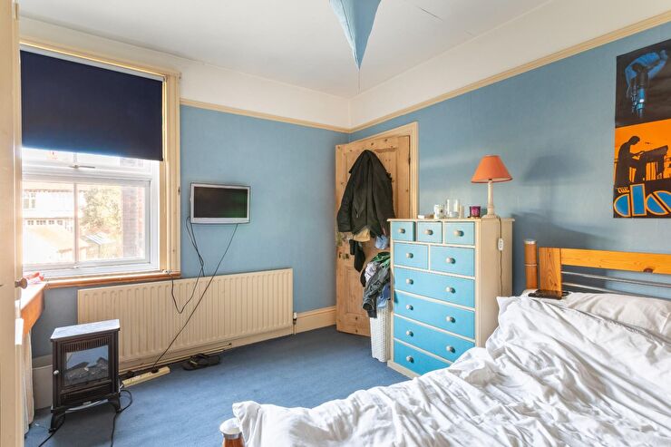Bay window to front, radiator, 2 x built in wardrobes, picture rail.