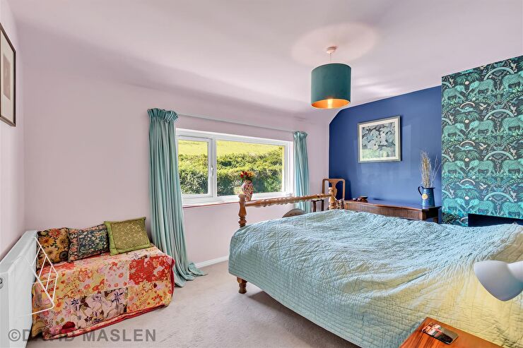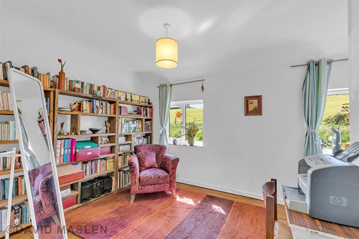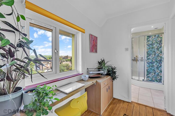 Double glazed window to rear with pretty far reaching views, original wood floorboards, storage cupboard, radiator.