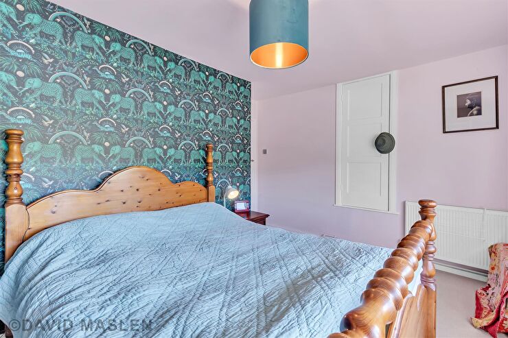 Hatch to part boarded loft space with pull down ladder and light, double glazed window to rear with pretty far reaching views, original floorboards.