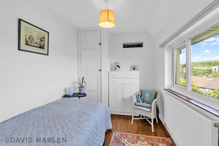 Double glazed window to front with views of the downs, radiator, built in wardrobe.